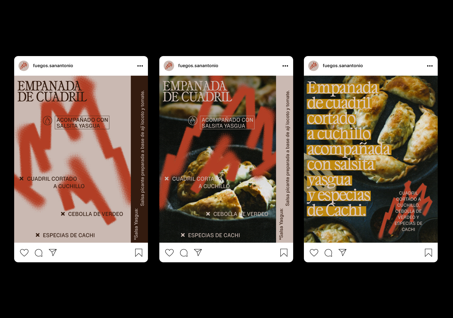 Fuegos® de San Antonio es un pequeño restaurante ubicado en Villa Carlos Paz, especializado en alimentos autóctonos a la parrilla. Desde su concepción, buscamos destacar la importancia del fuego en la propuesta gráfica y conceptual de la marca, generando una historia visual y discursiva en torno a este elemento fundamental para este negocio. Trabajamos en todo el proceso de branding, desarrollando también la arquigrafía del lugar, la comunicación en redes sociales y piezas gráficas diversas como carteles, menú, neones, señalética, etc.