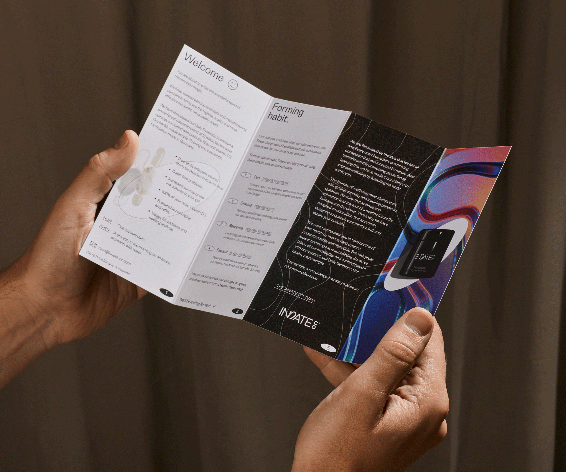 The starting point for this project was to let go of artificial ingredients and embrace the benefits of natural ones. It sought to show that there is also science and accuracy in organic components. This is how Innate Co. is born. A brand that produces natural, science-based natural supplements, promoting a conscious and healthy lifestyle. We were asked to develop the visual identity and communication of the brand. We worked on the complete branding project, from its conceptualization to its visual development.