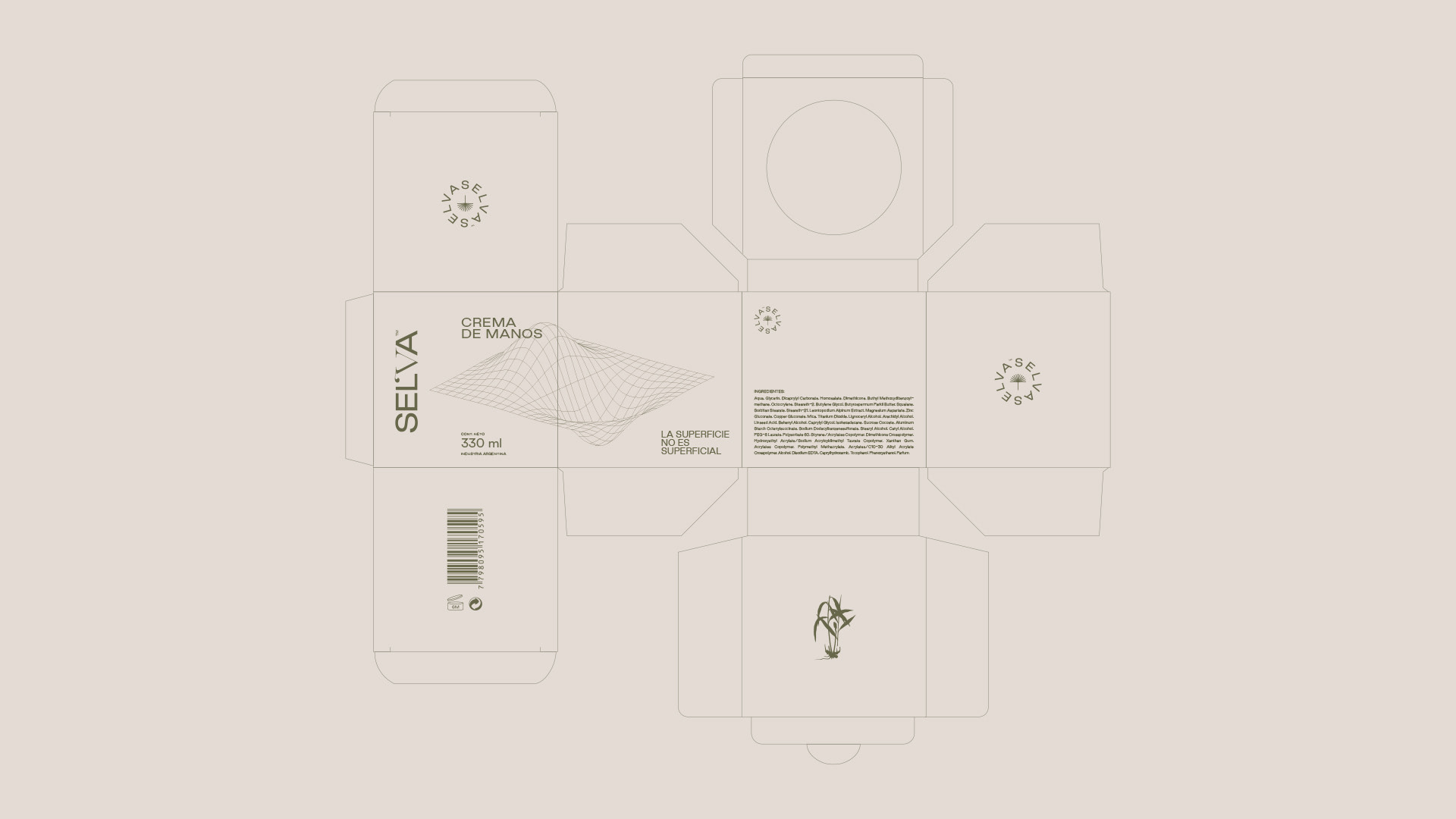 SELVA es un centro de Dermocosmética & Beauty ubicado en la provincia de Córdoba. La marca propone un abordaje integral en el cuidado del cuerpo, entendiendo que la relación con el mismo tiene conexiones profundas. Como complemento a sus servicios ofrece productos propios como cremas, jabones, lociones, entre otras. El desarrollo abarcó la conceptualización, el branding y el diseño de packaging.